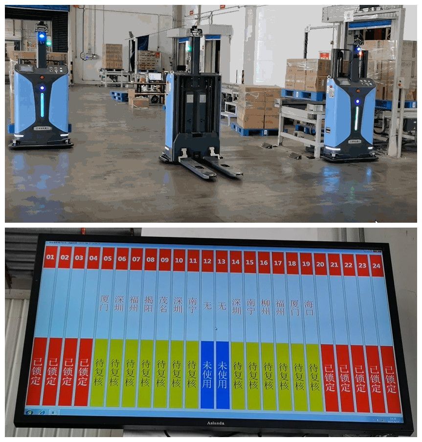 Cost reduction and efficiency increase: the project introduces three laser slam unmanned forklifts AGV and RCS dispatching system instead of manual picking and handling, which greatly improves the handling efficiency, independent charging, and 24-hour uninterrupted operation, reduces the handling cost, reduces the spacing between ground pallets, maximizes the utilization of storage space and reduces the storage operation cost.