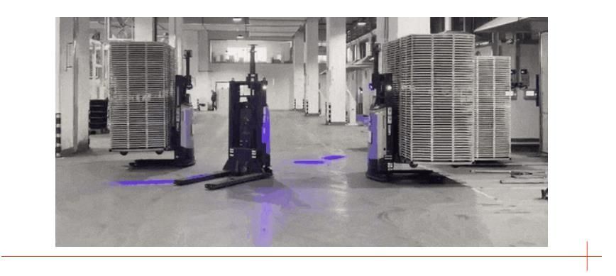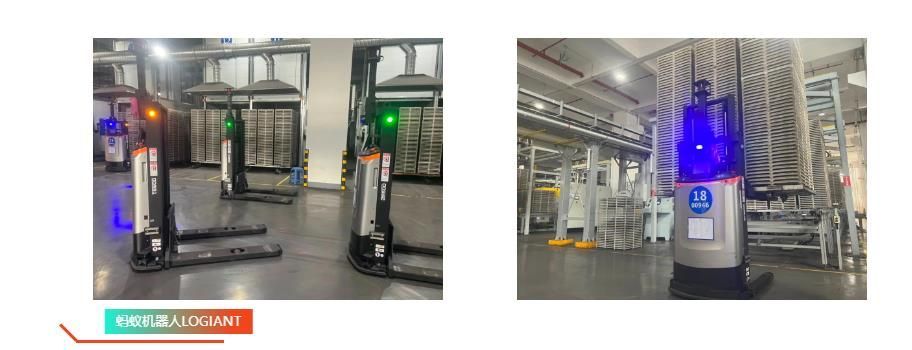45 hidden vehicles and forklifts operate on the same site, and are uniformly scheduled through a hybrid scheduling system, effectively saving costs and reducing unnecessary traffic control caused by division of responsibilities. At the same time, equipment boundaries are opened up, and automatic connections are made to conveyor lines, drying rooms, elevators, freight elevators, etc., realizing the full process automation of various materials handling. Multiple devices work together to meet the high production pace of the factory.