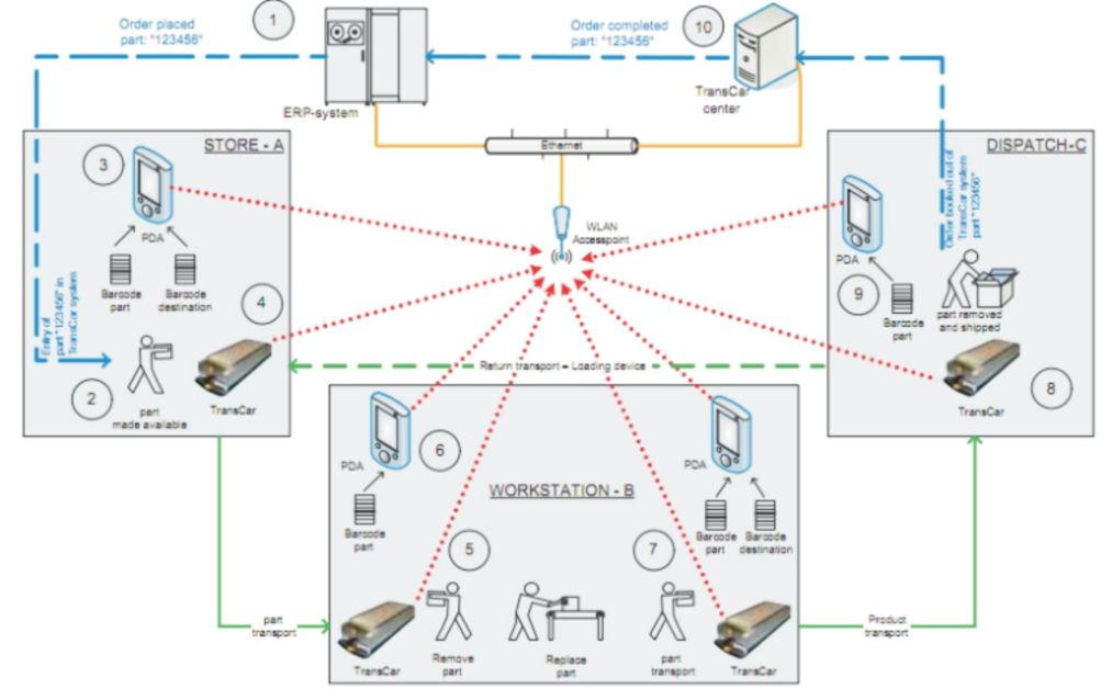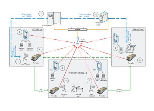 The AGV traffic control software system adopts wireless communication (WIFI) between the AGV and the AGV, and the traffic control system and the AGV form a wireless local area network. The traffic management system relies on the wireless local area network to issue system control instructions, task scheduling instructions, and avoidance scheduling instructions to the AGV. The traffic control system can also receive the communication signal sent by the AGV. The AGV relies on the wireless local area network to report the execution of various instructions, the current position of the AGV, and the current status of the AGV to the traffic management system.